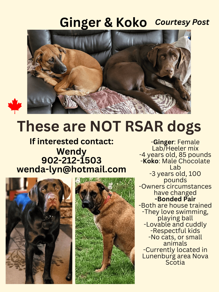Please note that the dogs posted on this page are not Relinquished Souls Animal Rescue dogs. We are posting them as a courtesy to their owners who are looking to re-home these animals.